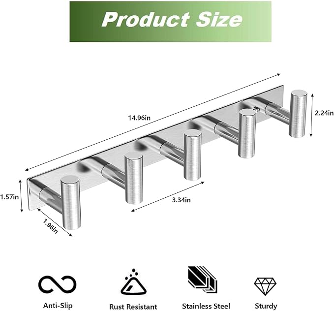 - [Premium Stainless Steel Construction]- Crafted from high-grade stainless steel, our wall-mounted coat rack is built to withstand daily wear and tear. Its rust-proof and moisture-resistant properties ensure long-lasting performance, making it a reliable choice for any room in your home or office. 【Important Note】-To protect the surface of our hooks during shipping, each base is covered with a blue protective film. After you receive your order, please peel off the film to reveal the shiny silver base underneath!