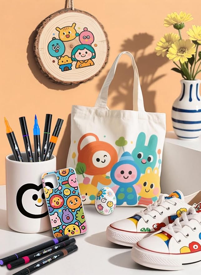- Dual Tip Design: Our acrylic markers feature a dual tip design with both a 1-5mm brush tip and a 1mm extra fine tip, allowing for greater versatility in your artwork. The extra fine tip is perfect for outlining and fine line work, while the brush tip is great for larger areas of coloring and detailing