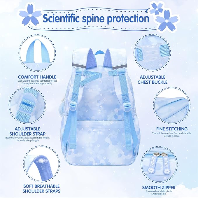 Lovely Girls Backpack School Bag for Students Kids Book Bag with Multiple Pockets Splash-proof Children's Backpack(17inch Blue)