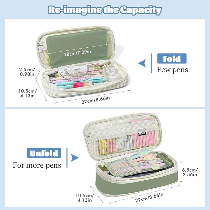 - 【Upgraded Large Capacity】Measuring 8.66 x 4.13 x 2.56in, the aesthetic pencil case comes with a large capacity design, which can hold up to 50 pens or 90 pencils. Enough capacity to store all your study stationery, such as pens, pencils, erasers, rulers, sticky notes, USB flash drives, or small calculator, etc.