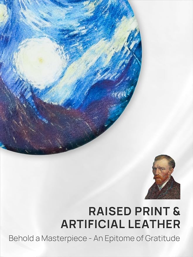 OMIRO 1X/10X Compact Magnifying Mirror, Unique Painting Pocket Mirror with Classical PU Leather (Round, Starry Night)