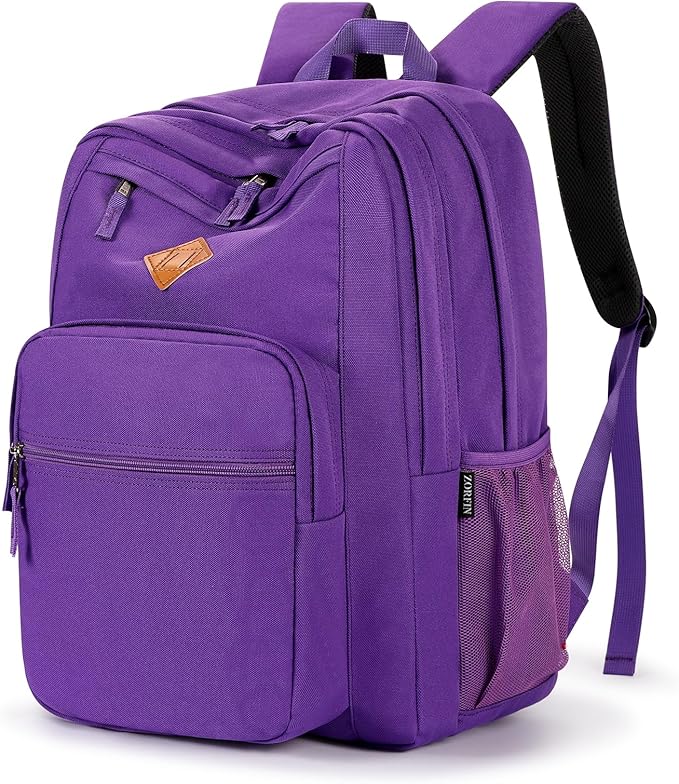 ZORFIN 26L Backpack for School, College, and Travel: Water Resistant Bookbag with 8 Compartments - Purple