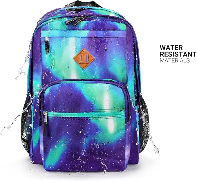 ZORFIN 26L Backpack for School, College, and Travel: Water Resistant Bookbag with 8 Compartments - Night Aurora SkyBlue