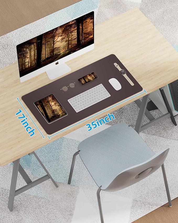 Leather Desk Pad Blotter,Mouse Pad,Office Desk Mat, Non-Slip PU Leather Desk mat,Large Desk mat,Waterproof Keyboard mat for Office/Home/Decor (Coffee,35" x 17")