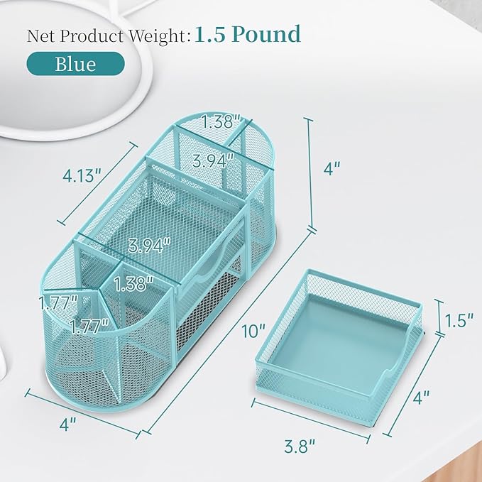 SUPEASY Mesh Desk Organizer, Desk Organizers and Accessories, Pen Holder with Drawers, Pencil Holder for Desk with 2 Drawer for Office Supplies, Blue