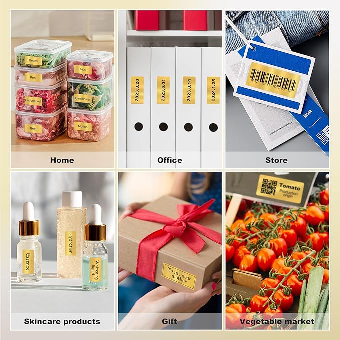 - Packing case expertly designed environmentally friendly , lightweight , and simple to place,Label maker tape Highly usable in both daily life and working environment, sorting labels for storage, date labels for food and cosmetics, displaying prices of goods, sorting labels for school and office documents, etc. Labels can be firmly adhered to paper, foam bags, plastic, glass,and more.