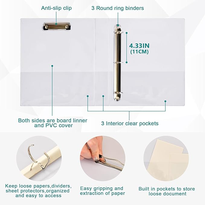 - 💛【Covenient to Use】: Anti-slip clip easy grip and extract papers. Hard shell cover can be a writing board for note-taking. The 3 d ring mechanism has the perfect tension for opening and closing. It holds pages well and latches without snapping.