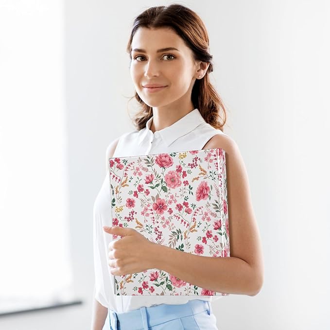 Colorful Flower Decorative 3 Ring Binder 2 Inch Large View Binders with Pockets File Organizer for Office College School, 1Pack