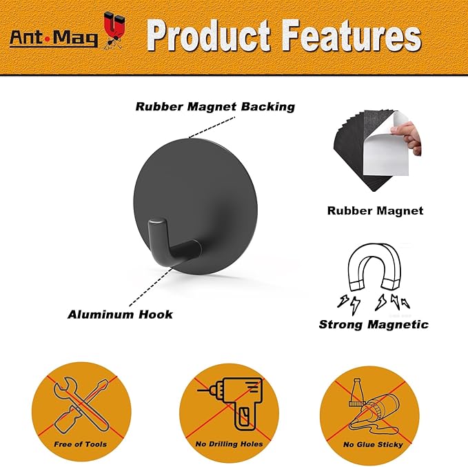 - [SAPCE SAVING]: Ant Mag magnetic rubber hooks aims to provide a neatly arranged room and space for your home. All the small items won't be set randomly by using the magnetic rubber hooks that is great for your house organization.