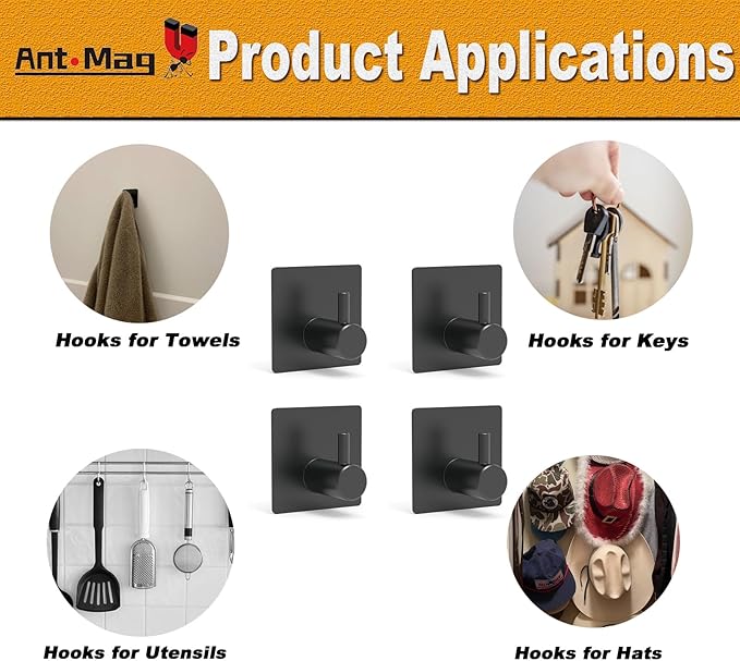 - [PREMINUM QUALITY]:Ant Mag magnetic key hooks are made of preminum aluminum alloy hook with rubber magnets attached backside.There is no damage of the attached metal surface when you hang keys or accesssories on it.