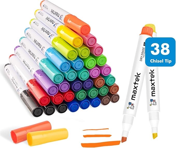maxtek Dry Erase Markers Chisel Tip, 38 Count, 17 Assorted Colors, Low Odor Whiteboard Markers Dry Erase, Colored Markers Bulk