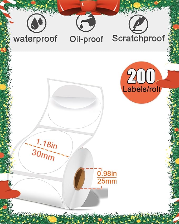 - [Specifications]: Wonlabel Round thermal labels with the size: 1.18" (200PCS/1 Roll, White)
