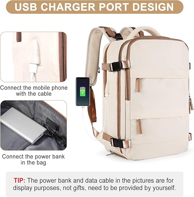 coofay Large Travel Backpack Carry on Flight Approved Mochila De Viaje Personal Item Travel Bag Backpacks for Men Women Carry on Backpack for Airplanes 18x14x8 Inches Travel Bag Beige with Brown