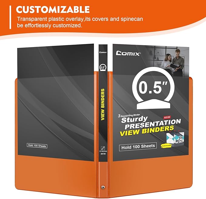 - Customizable:View binder with a Clear View poly overlay allows you to customize the spine and both covers.
