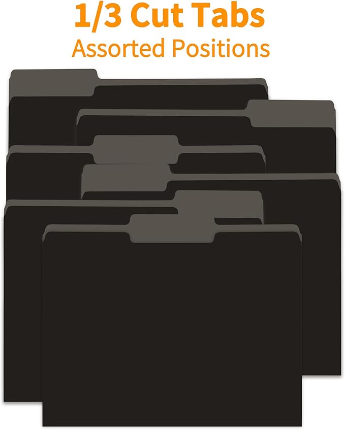 36 Packs File Folders,1/3-Cut Tabs,Black Letter Size File Folder,8.5x11 File Folders for Office,School and Home,Organizer File Folder