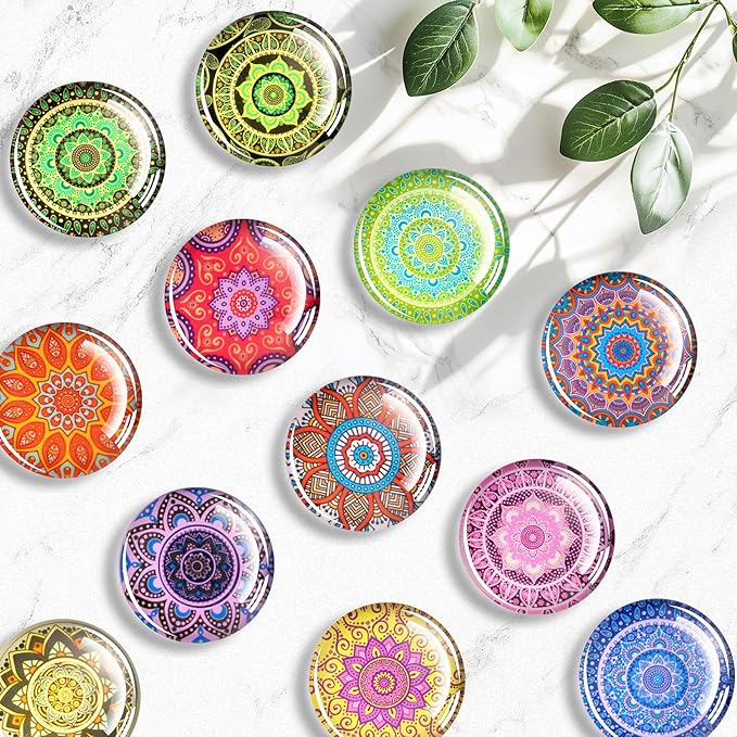 - ✨【Package Contents】This product set includes 12 circular glass fridge magnets measuring 30 x 3.5 mm (1.2 x 0.13 inches). Despite their compact size, these magnets possess strong magnetic force, making them ideal for securing various items to your fridge.