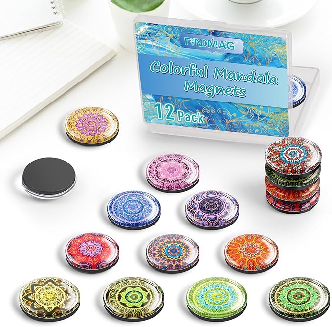 FINDMAG 12 Pcs Glass Fridge Magnets, Cute Fridge Magnet Sticker, Small Magnets for Office, Photo, Cabinet, Locker Accessories and Whiteboard