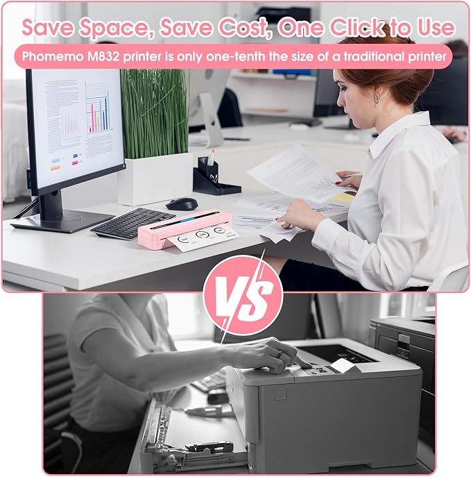 Phomemo M832 Portable Printers Wireless for Travel, Bluetooth Inkless Thermal Printer, Support 8.5"x11"/A4/4.33"/3.15"/2.08" Thermal Paper, Compatible with iPhone Laptop for Office School Home Use