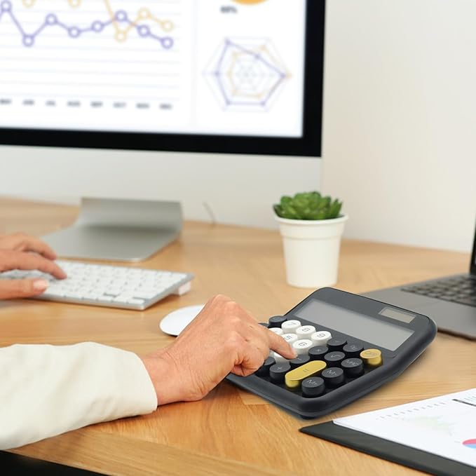 - Imitation Mechanical Keyboard Design - Our cute calculator make with large LCD display ,12-digit display.The big buttons imitating the knocking feel of a mechanical keyboard.Your calculation process will be faster and smoother with this calculator’s responsive buttons.