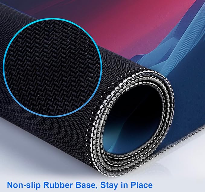 - Non-Slip Natural Rubber Base: This extended large mouse pad is soft and thick 3 mm/0.12 inches, the base is made of high quality natural rubber, which is harmless to human health. There will be no unpleasant smell. The mouse pad is designed with dense textured rubber, which can firmly grasp your desktop, avoid random movement, and provide stable operation for your mouse/keyboard.