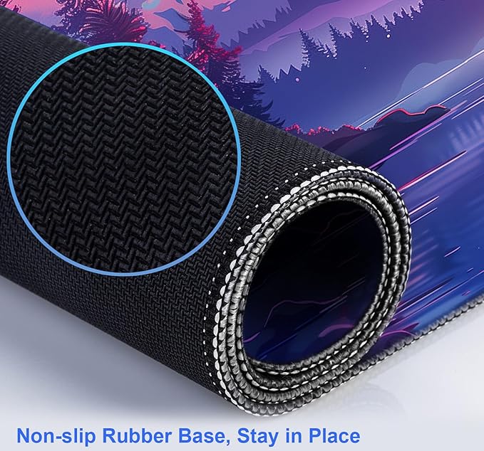 - Non-Slip Natural Rubber Base: This extended large mouse pad is soft and thick 3 mm/0.12 inches, the base is made of high quality natural rubber, which is harmless to human health. There will be no unpleasant smell. The mouse pad is designed with dense textured rubber, which can firmly grasp your desktop, avoid random movement, and provide stable operation for your mouse/keyboard.
