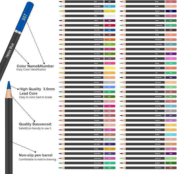 - 【Vivid Colors & Rich Type】Each drawing pencil inside is equipped with high-quality cores. which lay down smoothly and creamily like butter, The silky smooth soft pencil leads lay down lots of vivid colors, the colored core is highly pigmented, and can fade-resistant colors. Perfect for coloring & drawing etc. Soft break-resistant cores produce incredible tone and are fit for blending and layering multiple colors.