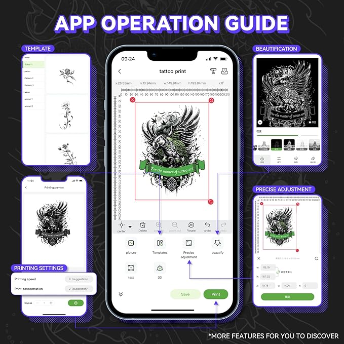 - Portable Design: Compact and lightweight , the tattoo printer is perfect for on-the-go artists, fitting easily into your kit.