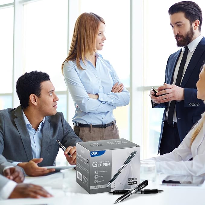 deli Gel Pens, 100 Pcs Retractable Pens Black Ink, Medium Point Pen 0.7mm, Smooth Writing, Fast Dry, No Bleed for Journaling Note Taking, Home School Office Supplies
