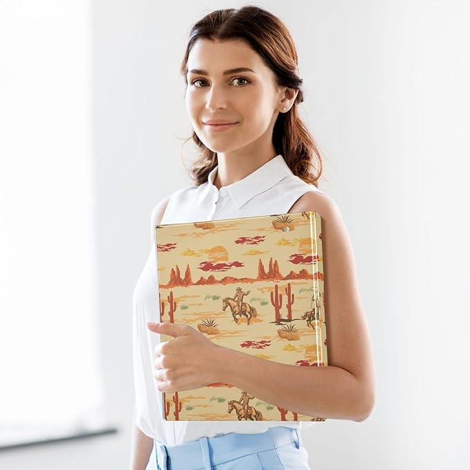Wild West Mexico Cowboy Decorative 3 Ring Binder 1.5 Inch Large View Binders with Pockets File Organizer for Office College School, 2 Pack