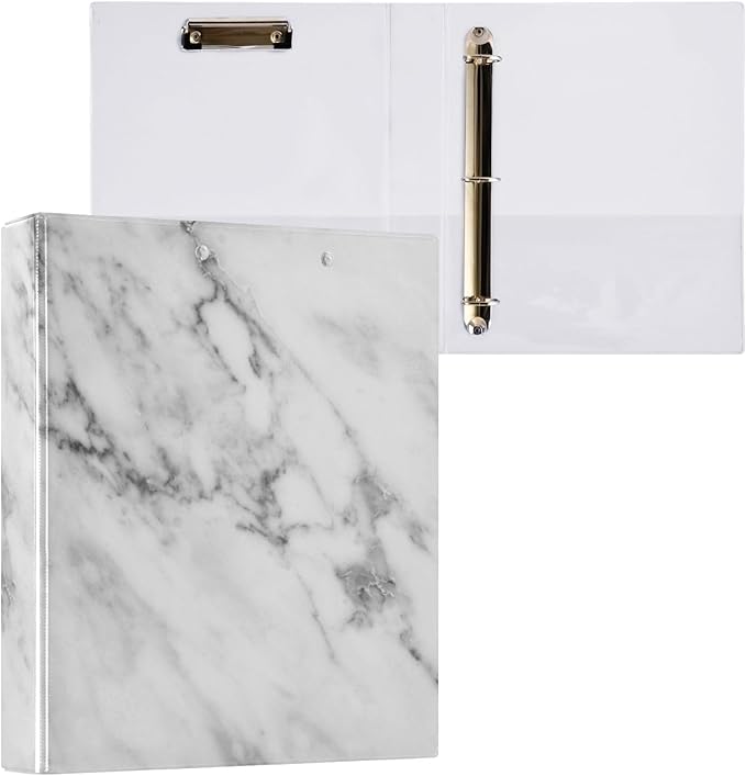 Marble White Grey Decorative 3 Ring Binder 1.5 Inch Large View Binders with Pockets File Organizer for Office College School, 2 Pack