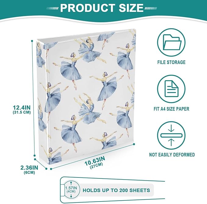 Ballet Dancer Decorative 3 Ring Binder 1.5 Inch Large View Binders with Pockets File Organizer for Office College School, 2 Pack