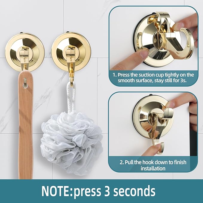 - 【Easy Install, No Needs for Tools】These suction cup shower hooks are easy to assemble and take off by one press without damaging walls, easy to use and helps keep your walls looking good.