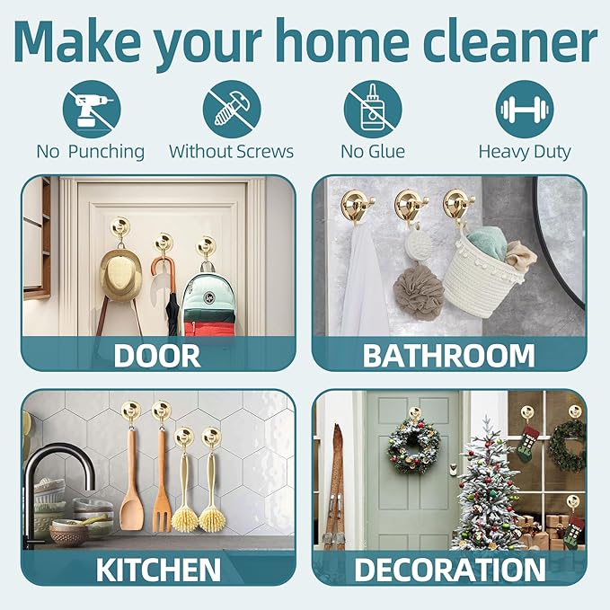 - 【Powerful Suction and 11lbs Heavy-duty Load-capacity】Vacuum Suction Hooks can hold a maximum weight of 11 lbs, while made of high-quality silicone rubber and plastic, ensuring that the hooks are transparent, durable, and long-lasting.
