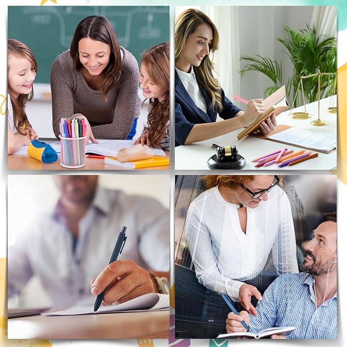 - Retractable Design: our multicolored pens showcase a retractable design, ensuring the pen tip remains protected when not applied, offering neatness and convenience; You don't need to worry about losing the pen cap; Just retract the pen tip and slide it into your book or jacket pocket, making it a versatile solution for daily use