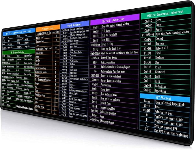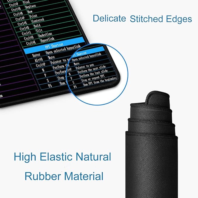 Hokafenle Large XL Mouse Pad, Excel Shortcut Keys Desk Keyboard Mouse Pads, PC Office Spreadsheet Mouse Mat, Non-Slip Stitched Edge Computer Mousepad