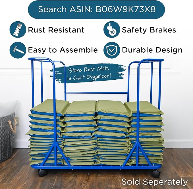 Children's Factory Nap Mats, 1 inch Thick Toddler Nap Mats for Preschools and Daycares, Comfortable and Soft 4 Section Folding Nap Mat, Sage and Deep Water, 1 mat included