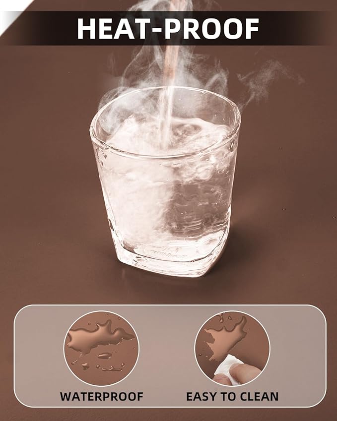 - PROTECT YOUR DESK:Crafted with ultra-durable PU leather, this mat acts as a shield against scratches, heat marks, spills, and everyday wear. Not only does it preserve your desk’s pristine finish, but its sleek, modern design elevates your workspace aesthetic—turning cluttered desks into polished, professional hubs.