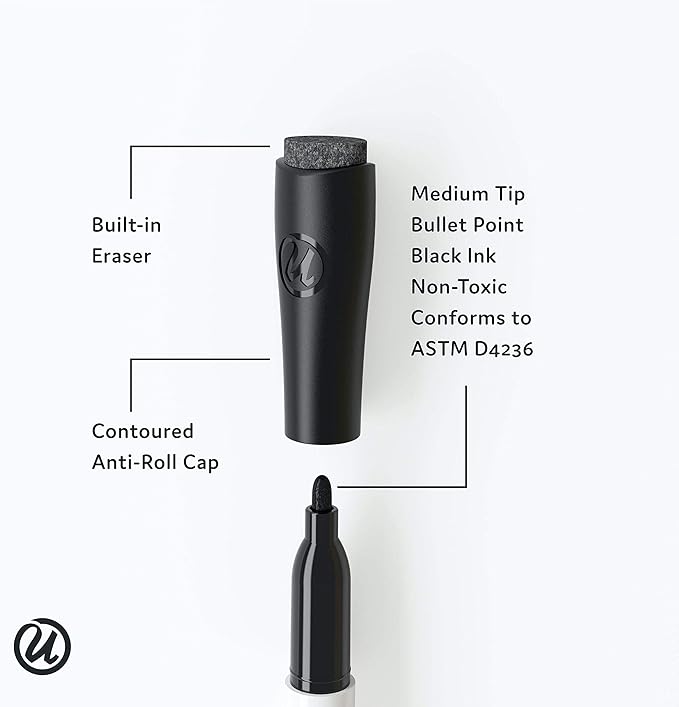 - QUICK CORRECTION CAP: Make corrections a breeze with the built-in felt erasers on the caps that allow for clean erasing without residue; featuring a contoured anti-roll cap shape, which prevents the markers from rolling off any flat surface or tray
