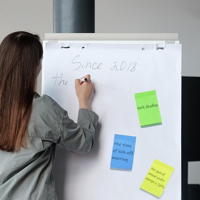 - Package: Comes with 24 packs 4" x 6" lined sticky notes,6 bright assorted color, each color for 4 packs, 50 sheets/pad. 1200 sheets in total. Enough quantity for daily use.