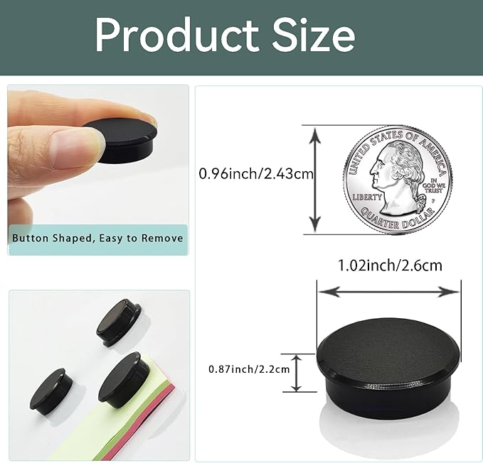 - 【Small strong magnets】These tiny magnets are small but strong, easy to move. Our small magnets for crafts have larger magnetic contact surface, hold better and more durable than other magnets. These fridge magnet are used on smooth surfaces containing iron elements such as refrigerators, whiteboards, lockers, storage cabinets, bulletin boards, etc. They work well as long as your item isn't too heavy. If you wish to hang a heavier object, please make sure you use 2+ round magnets pack