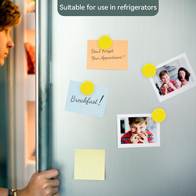 Cute and Whimsical Fridge Magnets, 30 Pack, Round, Plastic, Strong, Yellow