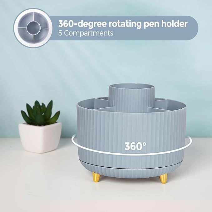 - Aesthetic and Practical Design: The office supplies sets are designed to be both elegant and functional. They enhance the aesthetics of the workspace with their stylish designs and colors, Unique designs 360-degree rotating pen holders keeping the desk tidy and organize