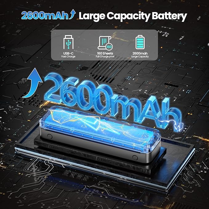 - Extended Battery Life: M834 wireless portable travel printer equipped with a 2600mAh rechargeable battery, the Phomemo M834 printer boasts 116% more capacity than other thermal portable printer, allowing for over 160 pages of continuous printing without power worries.