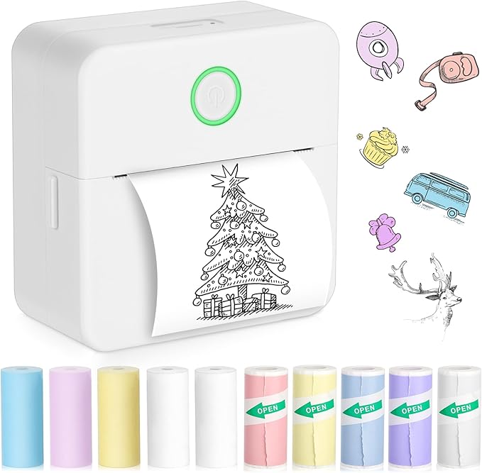 - 【More abundant paper roll gifts】 The product contains five roll of thermal paper, (blue, pink, yellow,white), and five roll of self-adhesive paper(blue, pink, yellow,purple,white) Our Mini Printer empowers you to create colorful and lovely patterns. Whether it's for crafting, scrapbooking, or simply adding a touch of personalization to your belongings, this printer is your ultimate teaching playmate for children and a creative tool for anyone seeking inspiration.