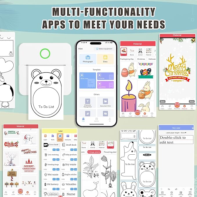 - 【Powerful Mobile App】The "Tiny Print" app is available for free to users indefinitely. With just one click, you can print and save time and effort. The app offers a wide range of templates to choose from, including tags, lists, messages, as well as various material themes such as Christmas, Easter, Thanksgiving, and everyday line drawings. By selecting different types of materials, you can directly print interesting and vivid pictures.