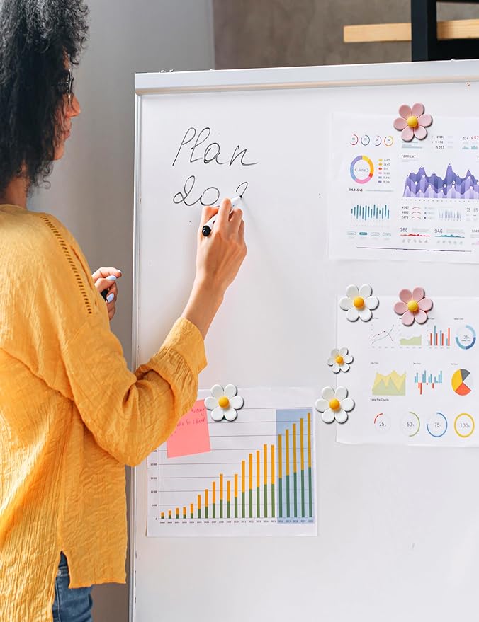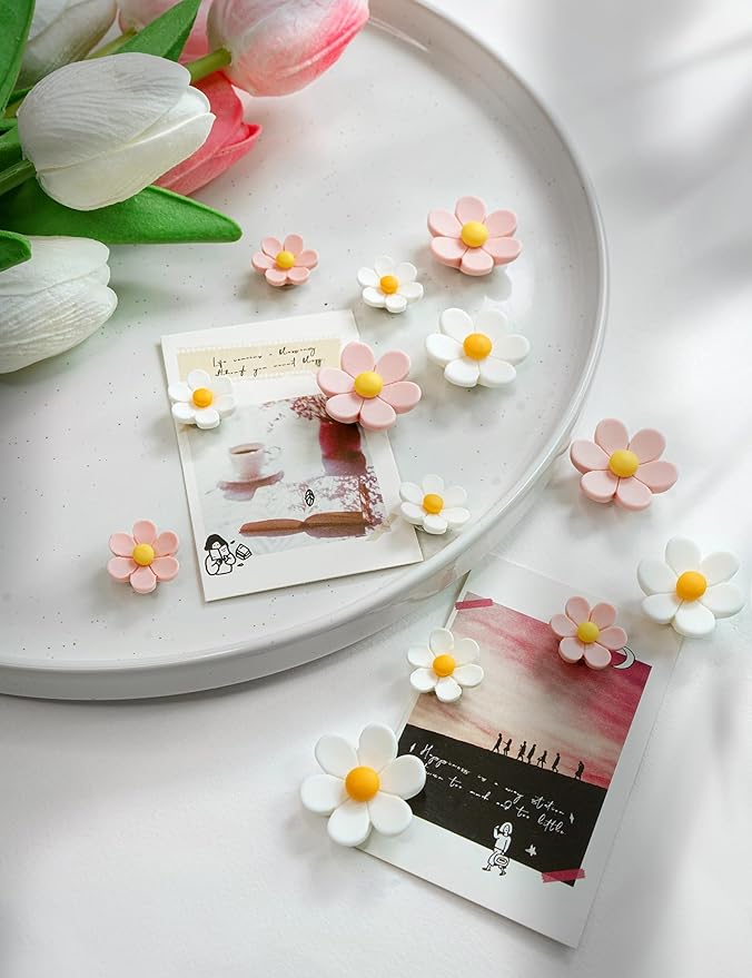 Mymazn Fridge Magnets Cute Refrigerator Magnets Colorful Decorative Magnets 3D Flower Magnets for Office Kitchen Locker 16PCS Pink White (8 Small+8 Large)