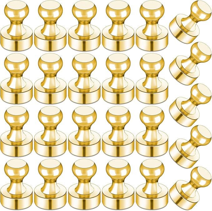 LOVIMAG Refrigerator Magnets, Fridge Magnets, Strong Whiteboard Magnet, Gold 25 Pcs Magnetic Push Pins, Strong Metal Magnet for Fridge, Whiteboard, Office, Classroom, Map, Kitchen