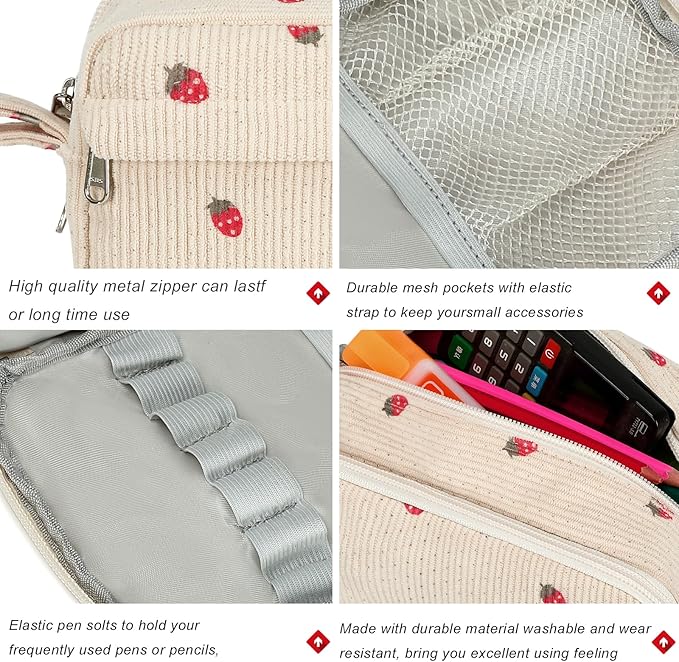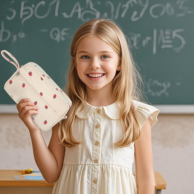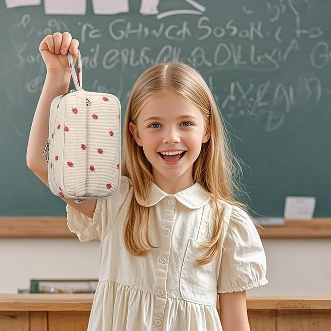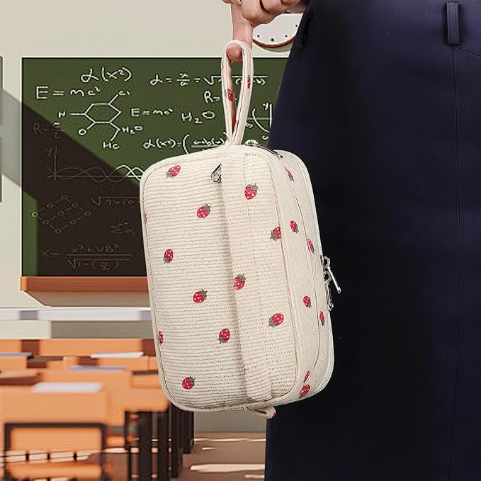 Bluboon Big Capacity Pencil Case Pencil Pouch Pen Case School Supplies Cute Pencil Box Pencil Bag for Teen Girls Boys Women Man (Strawberry Beige)