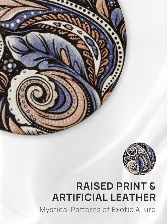 OMIRO 1X/10X Compact Magnifying Mirror, Unique Painting Pocket Mirror with Classical PU Leather (Round, Paisley)