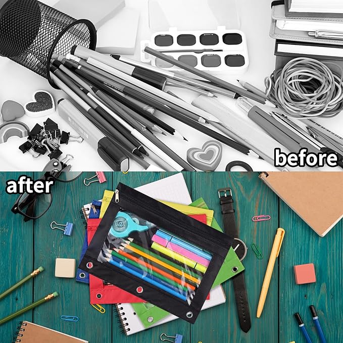 - 【3-RING】The intimate 3-ring buttonhole design can be easily placed in a standard 3-ring binder pocketes. Easily pack all your odds and ends and collect them together.